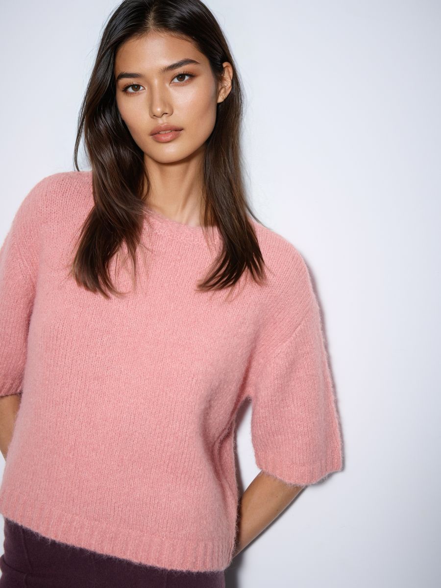 Rożowy sweter z domieszką wełny