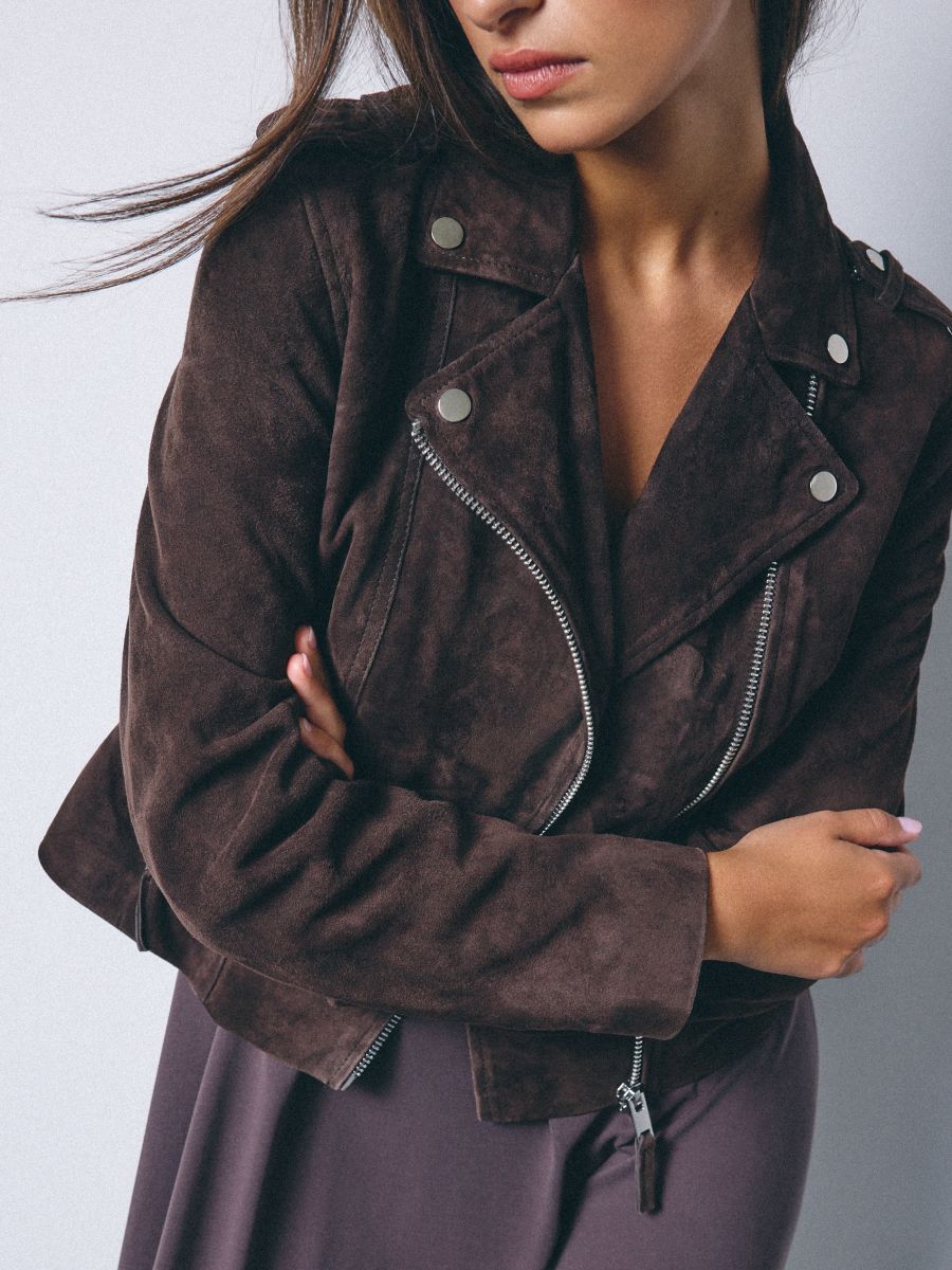 Skórzana brązowa ramoneska