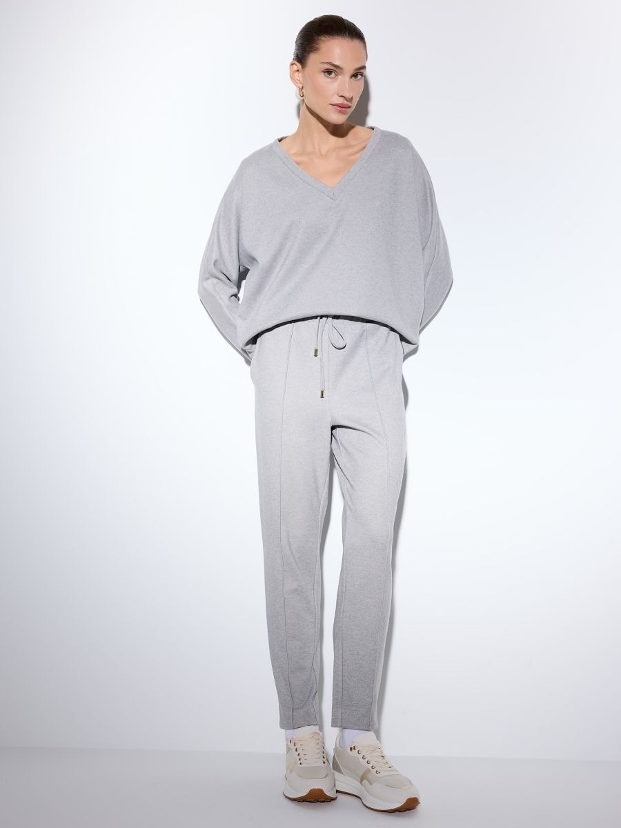 Szare spodnie z szeroką nogawką